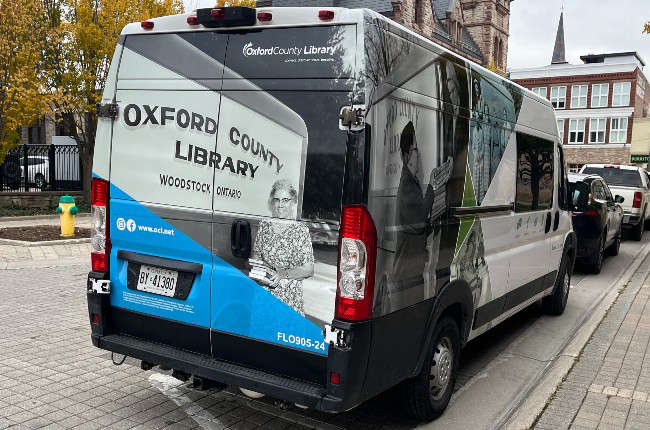 While not a bookmobile like *Ox on the Run*, which delivers library programs directly to residents, the transit van plays a vital role behind the scenes. It travels between Oxford County Library’s 14 community branches and the County Administration Building, and also supports deliveries for Woodingford Lodge, EarlyON, and Paramedic Services.